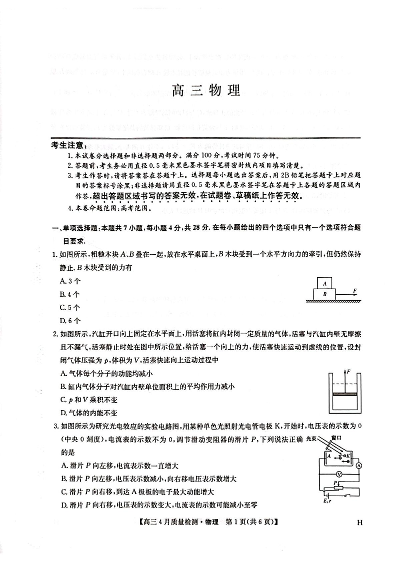 河南省九师联盟2025届高三下学期4月质量检测 物理.pdf