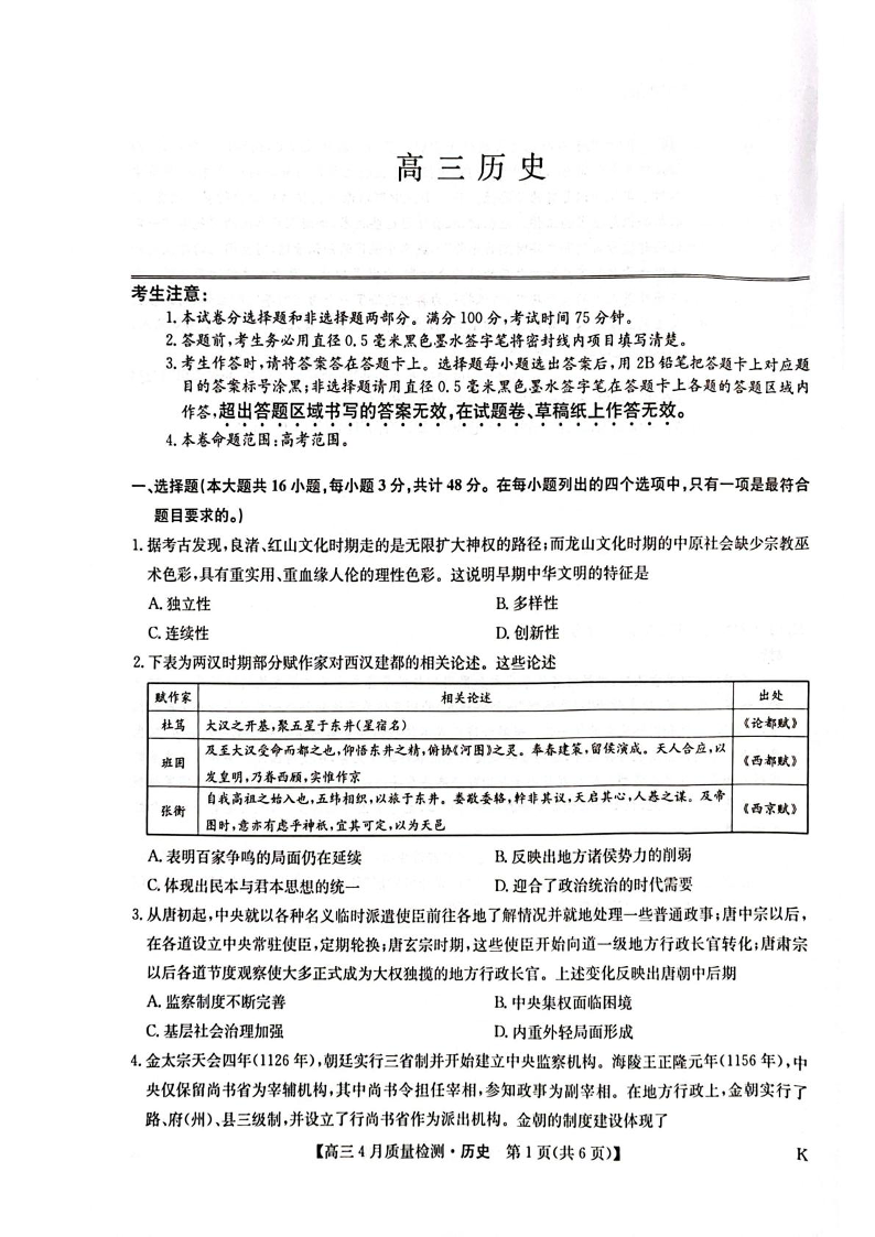 河南省九师联盟2025届高三下学期4月质量检测 历史.pdf