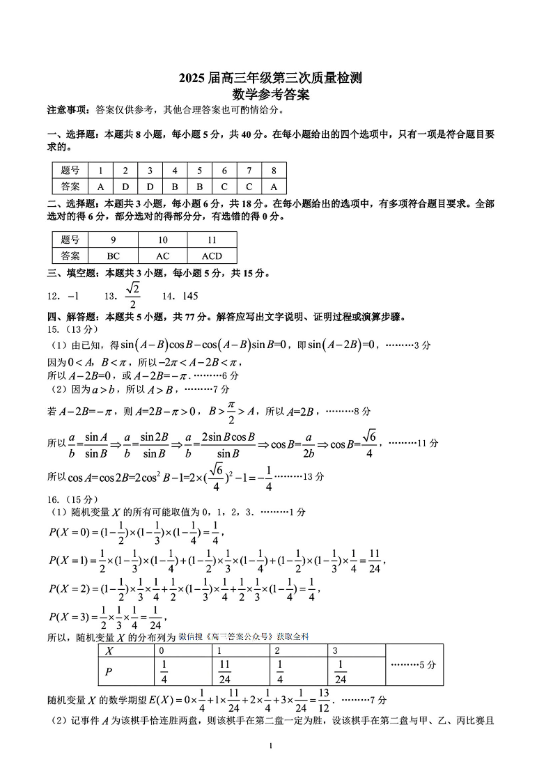 开封市2025届高三年级第三次质量检测 数学答案.pdf