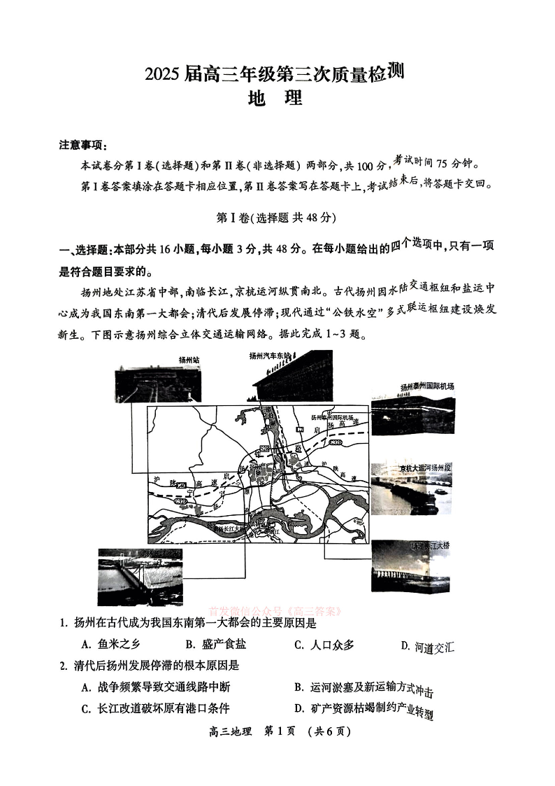 开封市2025届高三年级第三次质量检测 地理.pdf