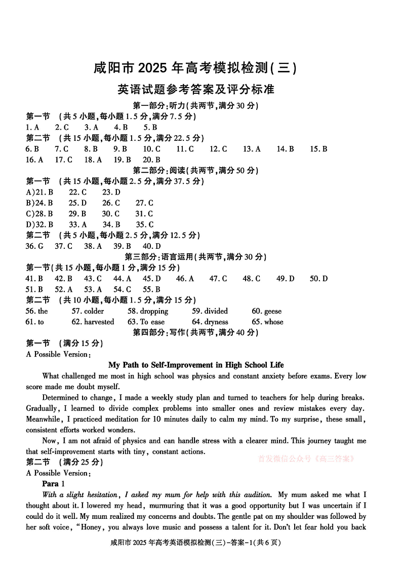 咸阳市2025年高考模拟检测(三)英语答案.pdf