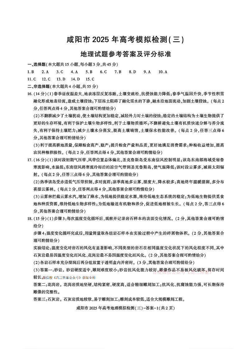咸阳市2025年高考模拟检测(三)地理.pdf