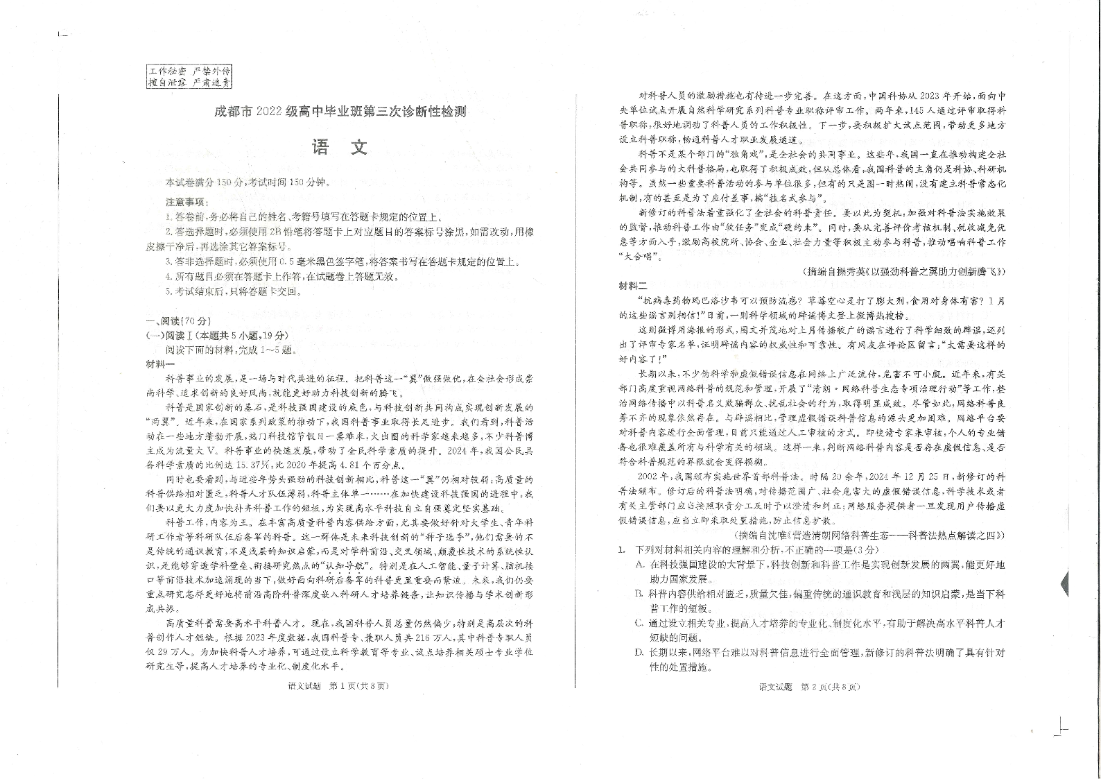 成都市2022级高中毕业班第三次诊断性检测 语文.pdf
