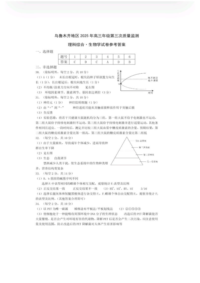 新疆乌鲁木齐地区2025年高三年级第三次质量监测 理综生物答案.pdf