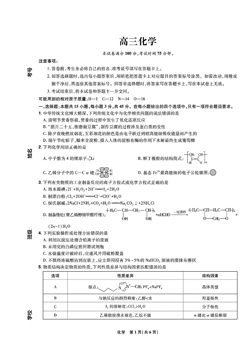 东北三省精准教学联盟2025届高三4月联考 化学.pdf