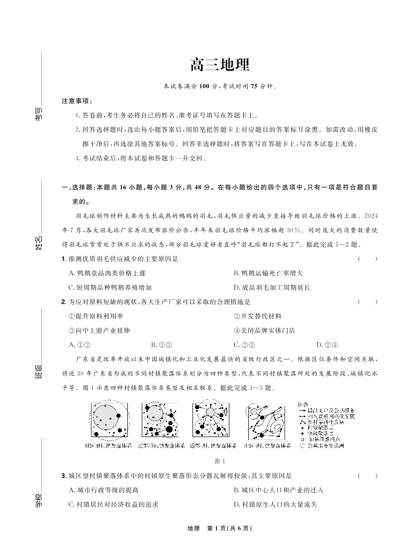 东北三省精准教学联盟2025届高三4月联考 地理.pdf