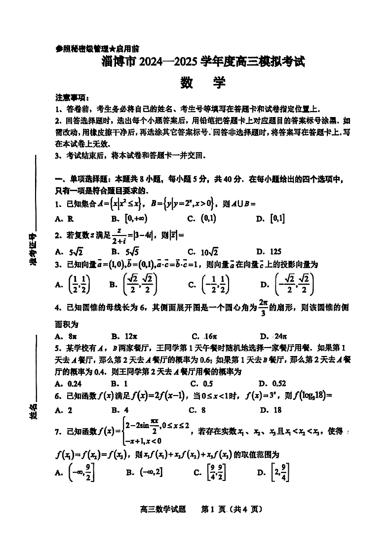山东省淄博市、滨州市2025届高三模拟考试 数学.pdf