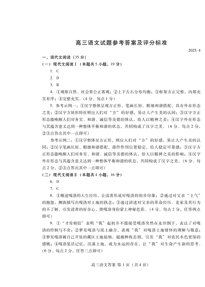 山东省潍坊市2025届高三高考模拟考试 语文答案.pdf