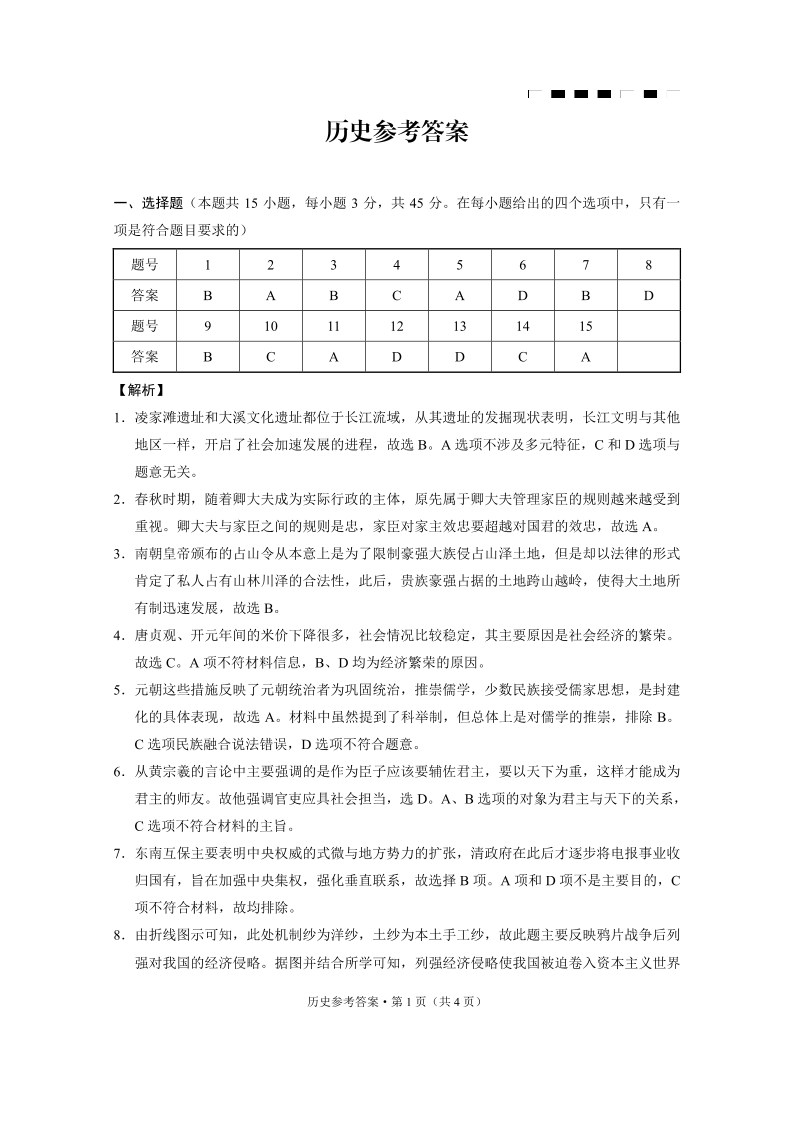 巴蜀中学2025届高考适应性月考卷(八)历史-答案.pdf