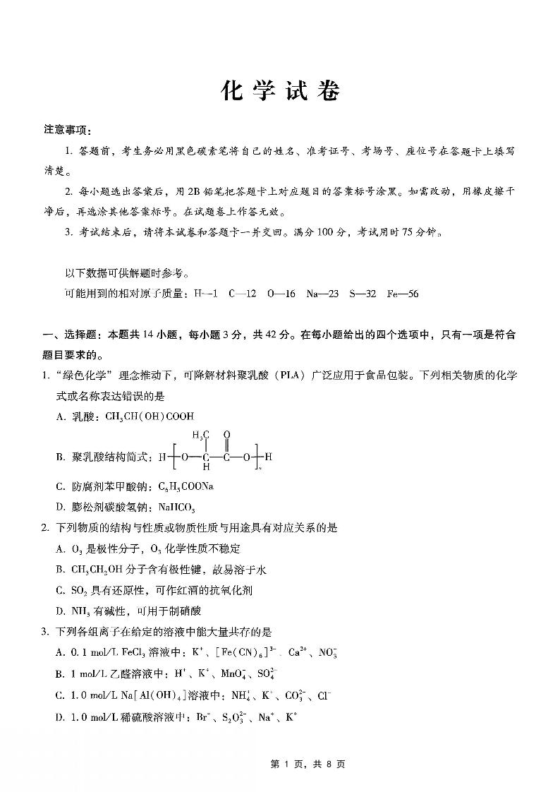 巴蜀中学2025届高考适应性月考卷(八)化学.pdf