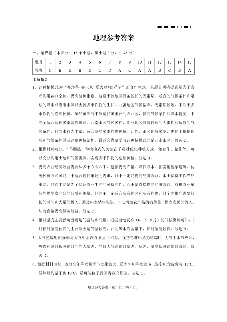 巴蜀中学2025届高考适应性月考卷(八)地理-答案.pdf