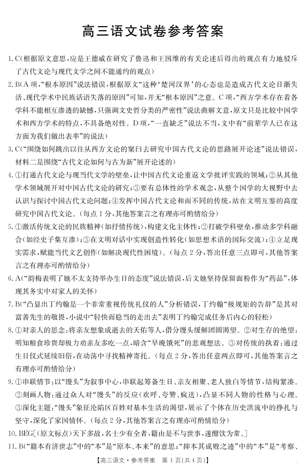 【语文答案】江西省2025届高三下学期4月联考.pdf