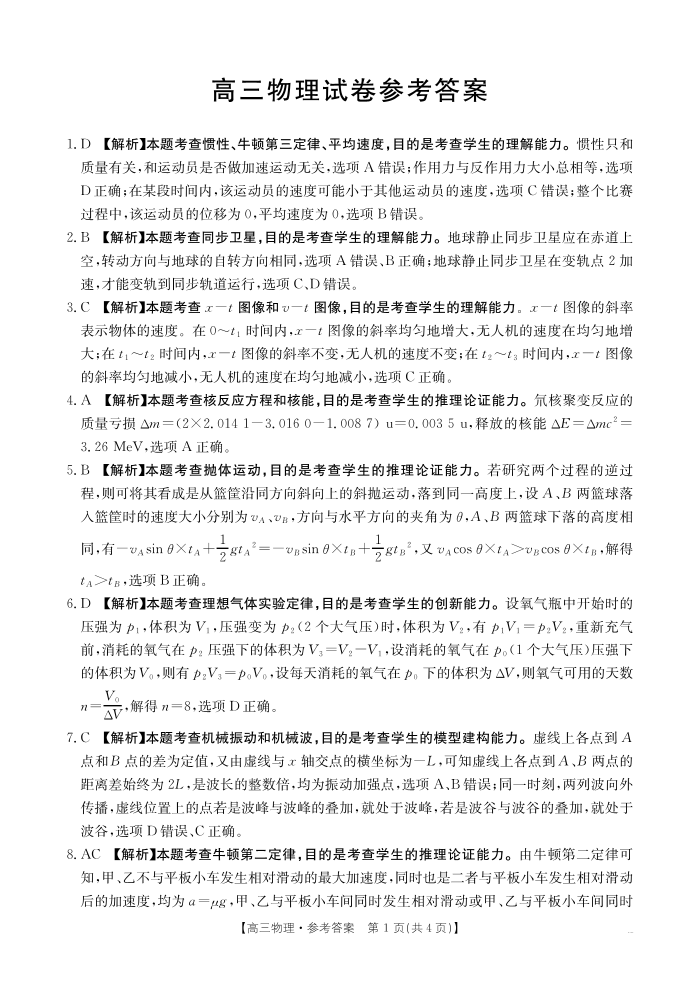 【物理答案】江西省2025届高三下学期4月联考.pdf