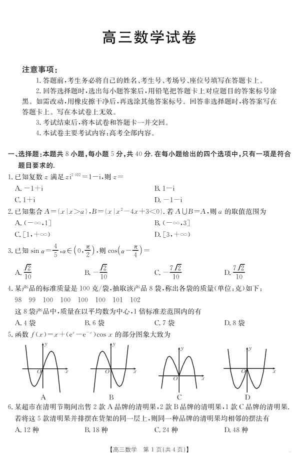 【数学】江西省2025届高三下学期4月联考.pdf