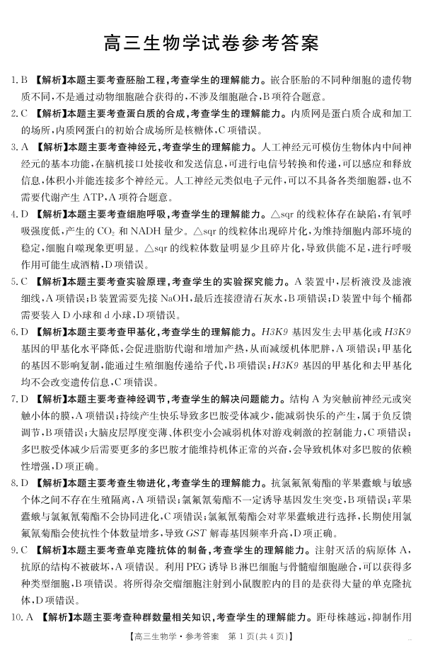 【生物学答案】江西省2025届高三下学期4月联考.pdf