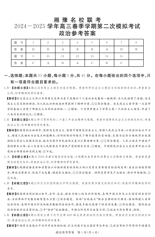 湘豫名校联考2025届高三春季学期第二次模拟考试 政治答案.pdf