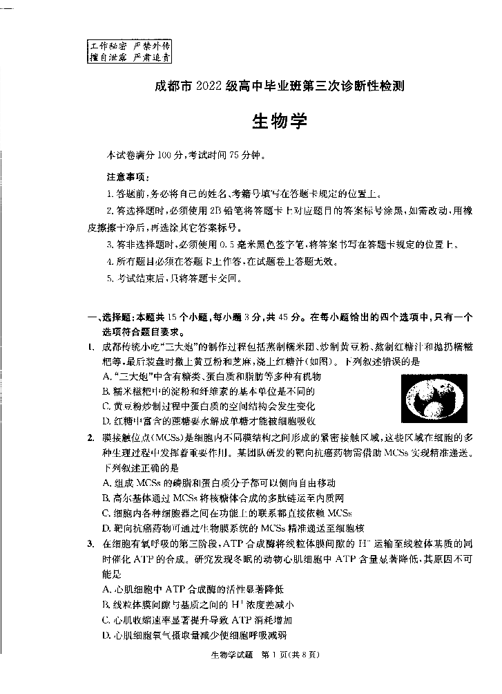 成都市2022级高中毕业班第三次诊断性检测 生物.pdf