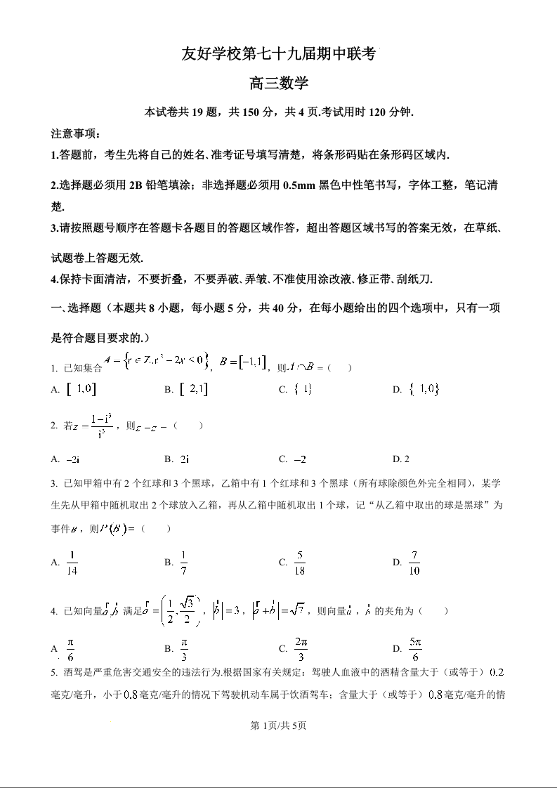 友好学校第七十九届期中联考高三数学试题.docx