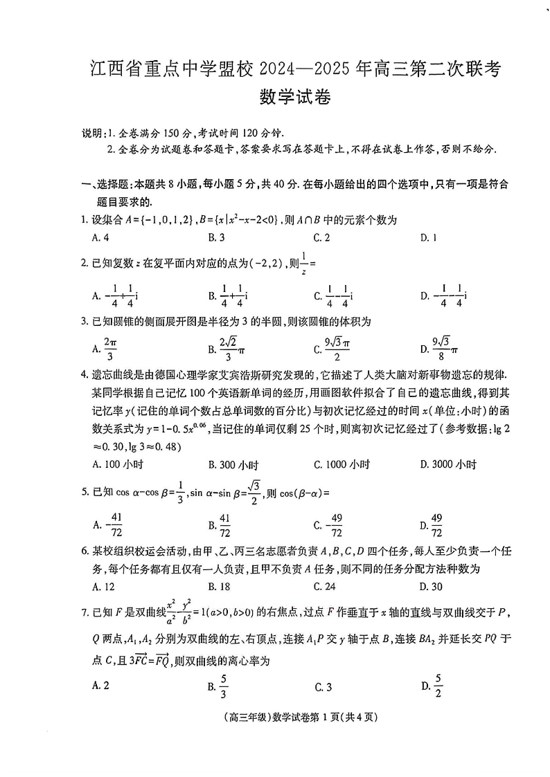 江西省重点中学盟校2024-2025年高三第二次联考 数学(含答案).pdf