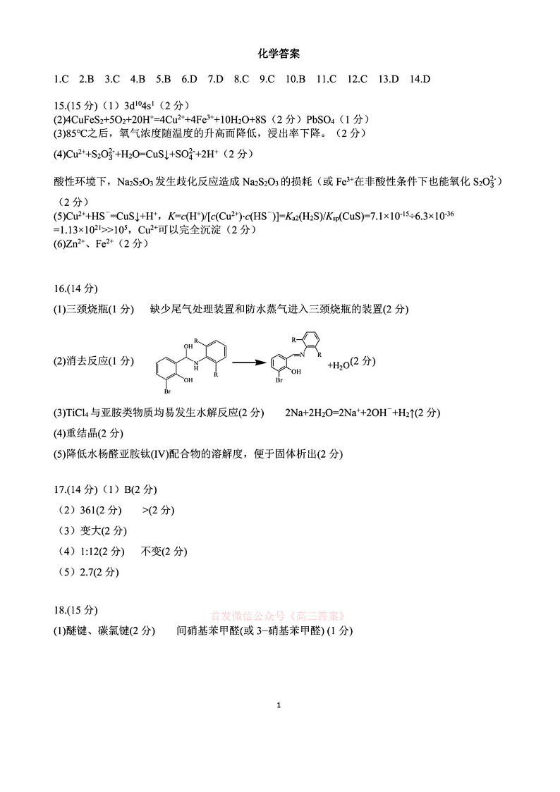江西省重点中学盟校2024-2025年高三第二次联考 化学答案.pdf