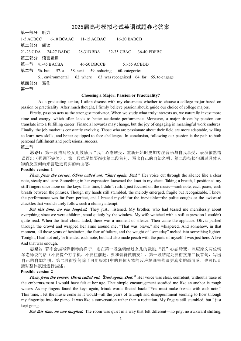 湖北省“黄鄂鄂”2025年高三下学期4月联考 英语答案.docx