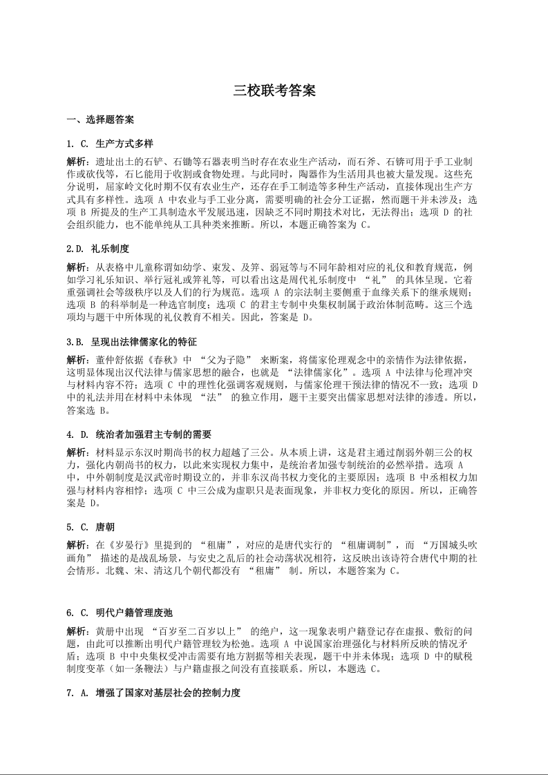 湖北省“黄鄂鄂”2025年高三下学期4月联考 历史答案.docx