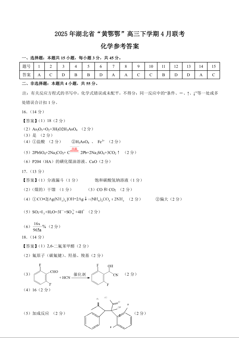 湖北省“黄鄂鄂”2025年高三下学期4月联考 化学答案.doc