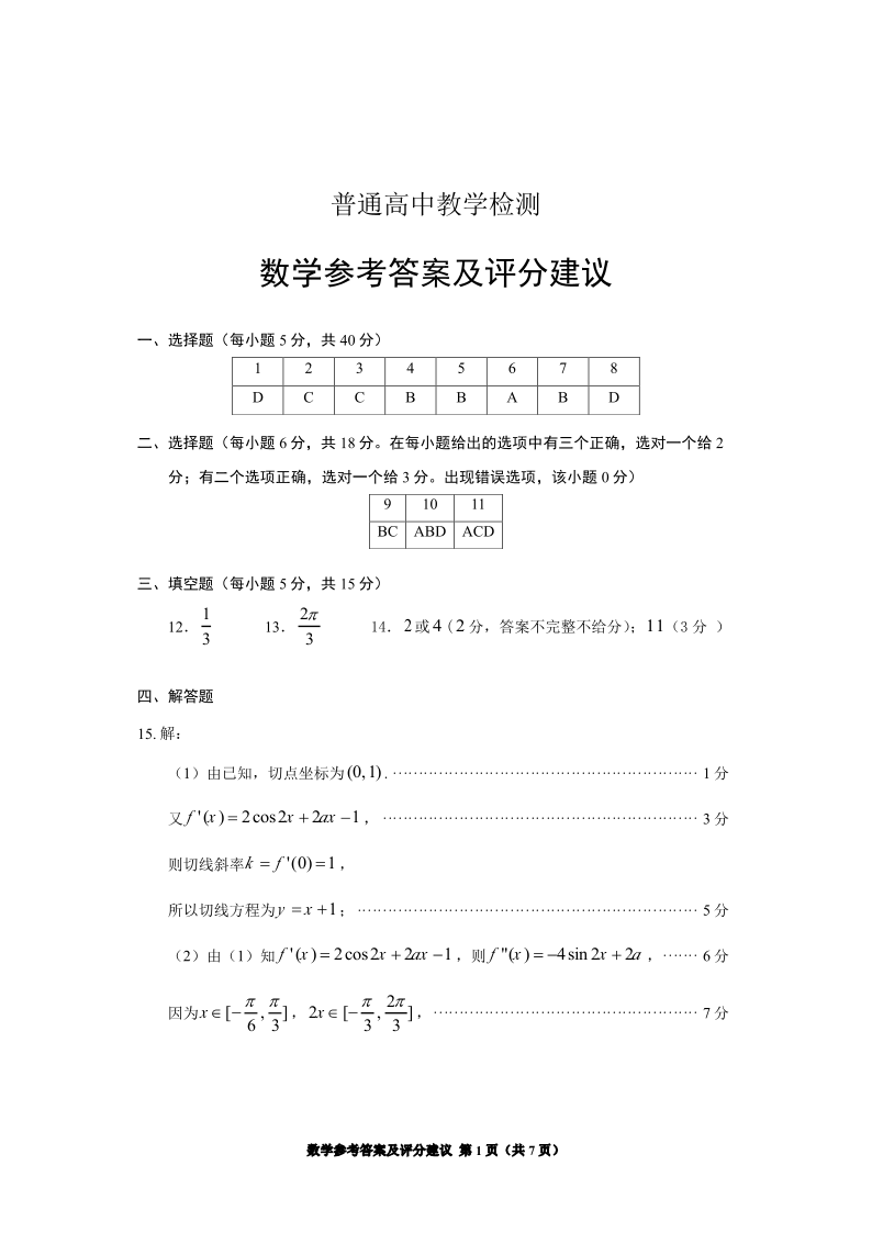 贵州省2025年基础教育质量提升普通高中教学检测 数学答案.pdf