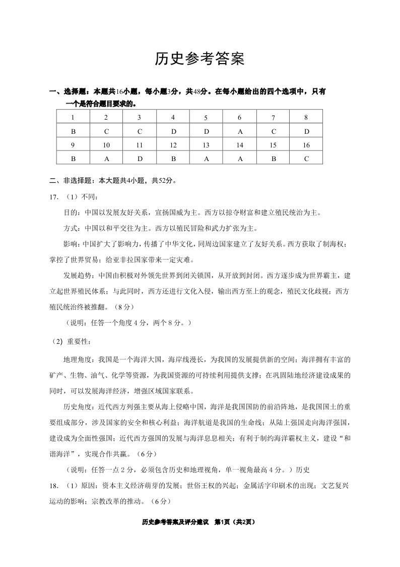 贵州省2025年基础教育质量提升普通高中教学检测 历史答案.pdf