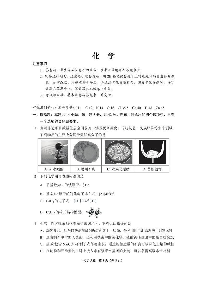贵州省2025年基础教育质量提升普通高中教学检测 化学.pdf