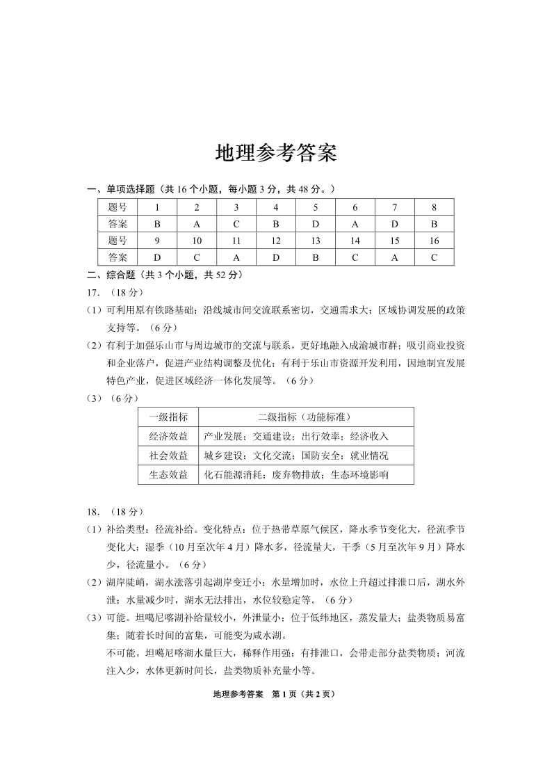 贵州省2025年基础教育质量提升普通高中教学检测 地理答案.pdf