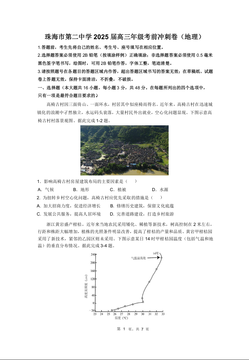珠海市第二中学2025届高三年级考前冲刺卷 地理.docx