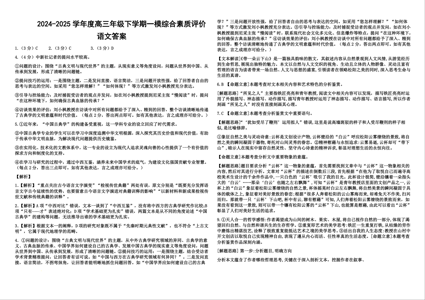 高三语文下一模试题答案.docx