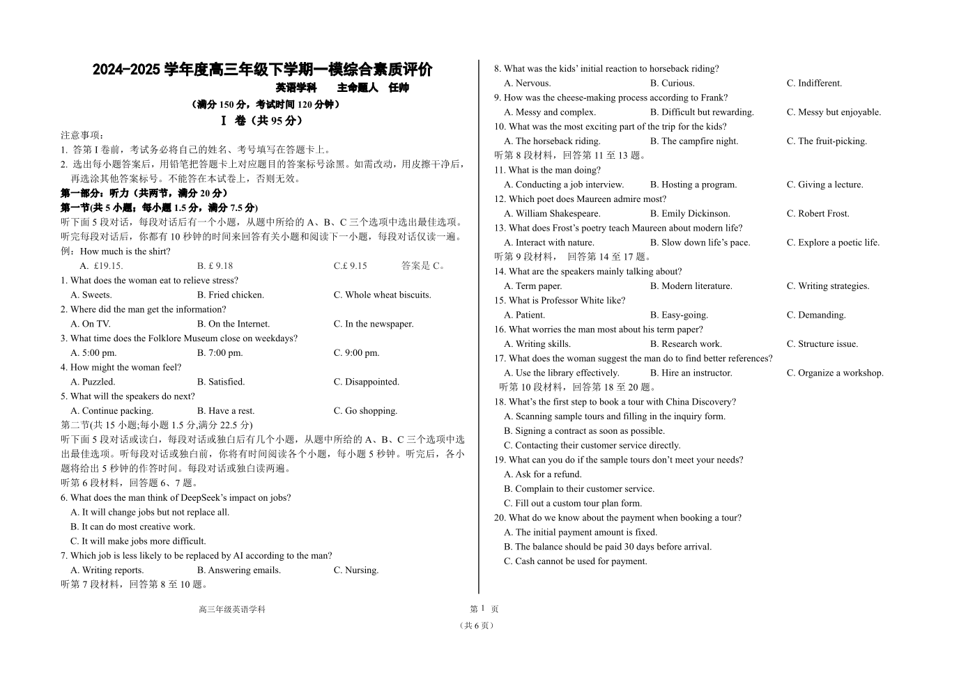 河北省衡水中学2024-2025学年高三年级下学期一模考试 英语.pdf