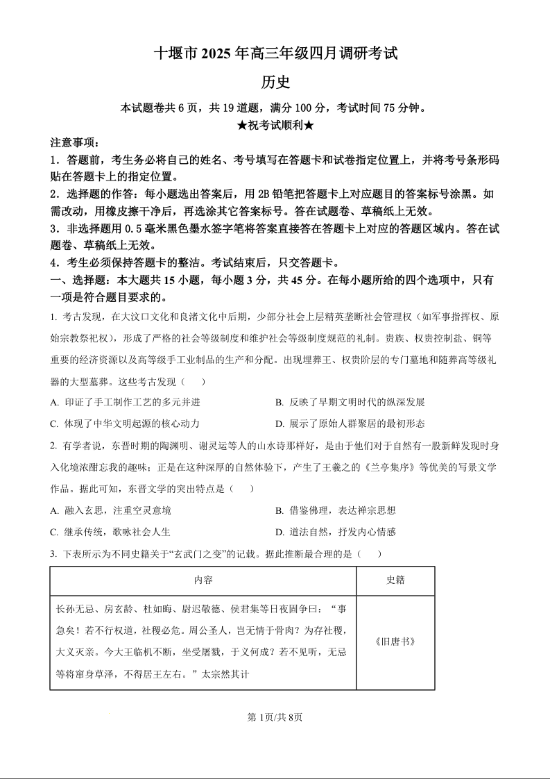 十堰市2025年高三年级四月调研考试 历史.docx