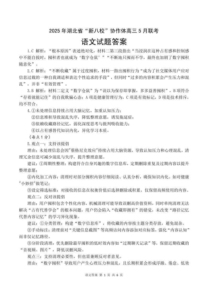 2025年湖北省“新八校”协作体高三5月联考 语文答案.pdf