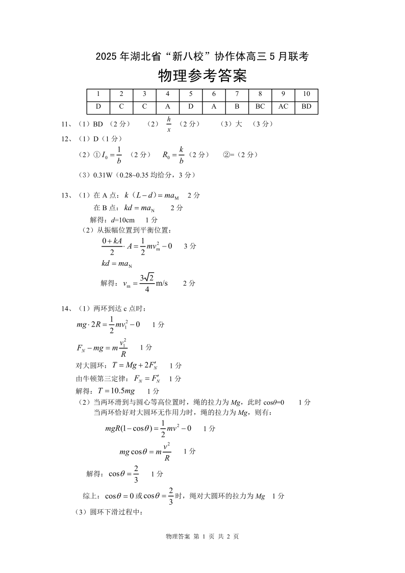2025年湖北省“新八校”协作体高三5月联考 物理答案.pdf
