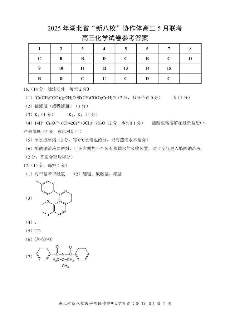 2025年湖北省“新八校”协作体高三5月联考 化学答案.pdf