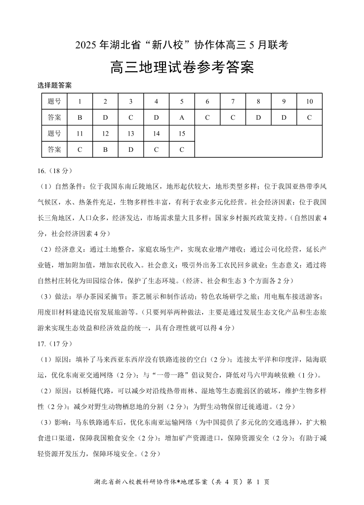 2025年湖北省“新八校”协作体高三5月联考 地理答案.pdf