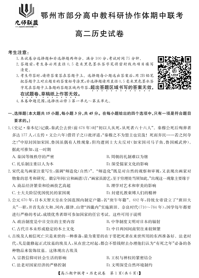 历史-鄂州市高二期中联考.pdf