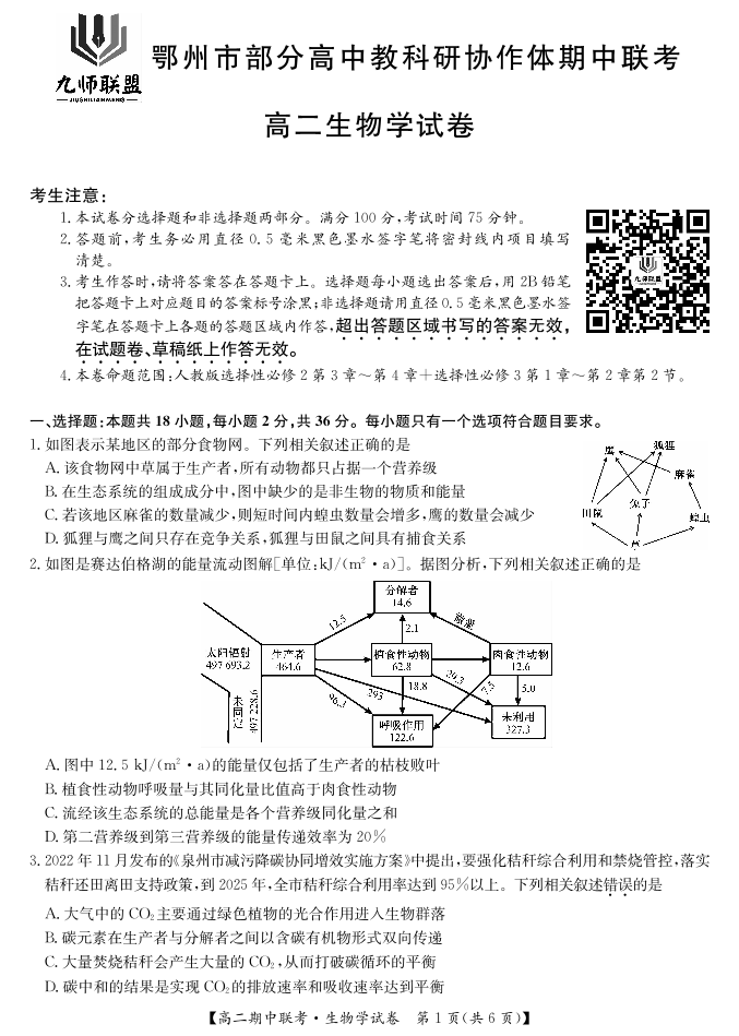生物-鄂州市高二期中联考.pdf