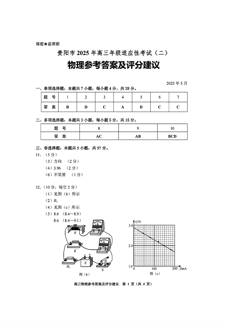 贵阳市2025年高三年级适应性考试(二)物理答案.pdf