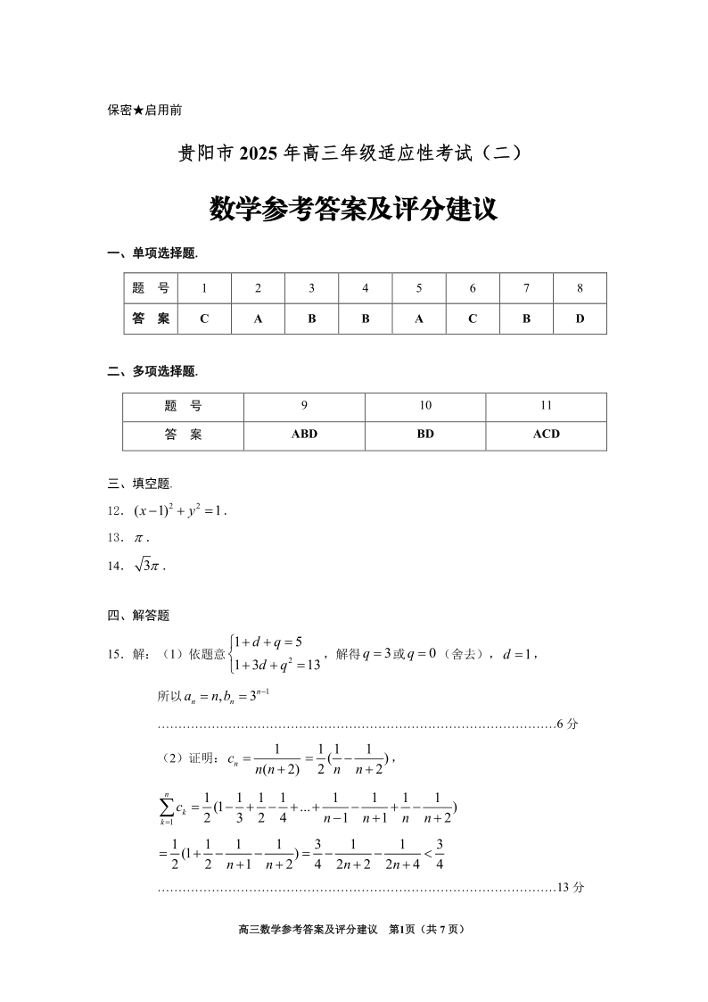 贵阳市2025年高三年级适应性考试(二)数学答案.pdf