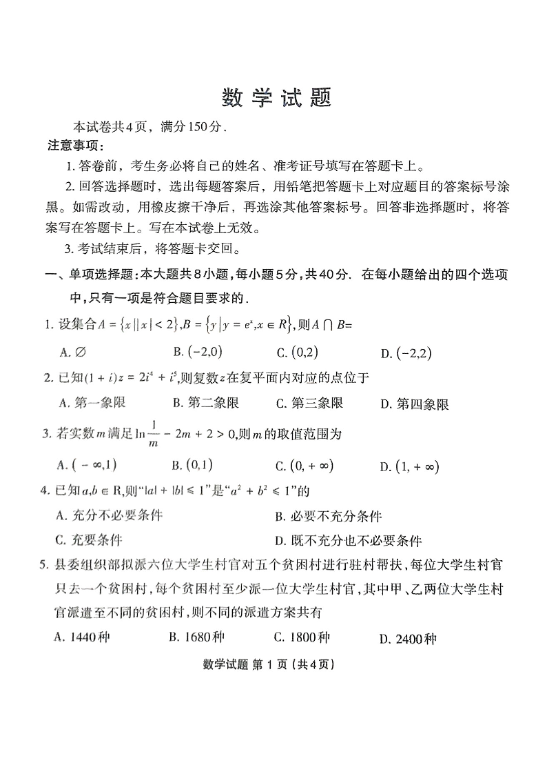 数学试题卷 【福建卷】福建省三明市2025年普通高中高三毕业班五月质量检测(三明四检)(5.6-5.8).pdf