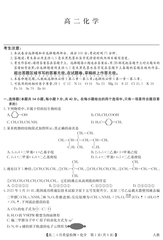 化学试卷-高二4月质量检测(人教).pdf