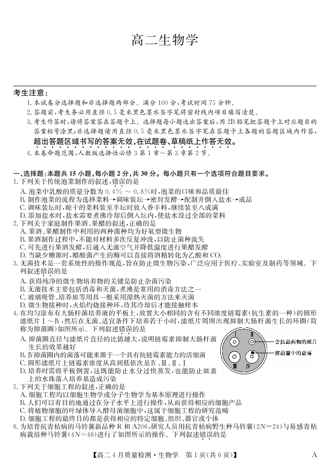 生物试卷-高二4月质量检测 (A).pdf