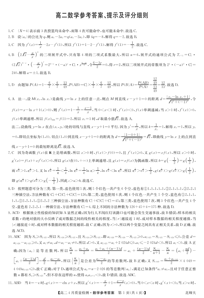 数学答案-高二4月质量检测(北师大).pdf