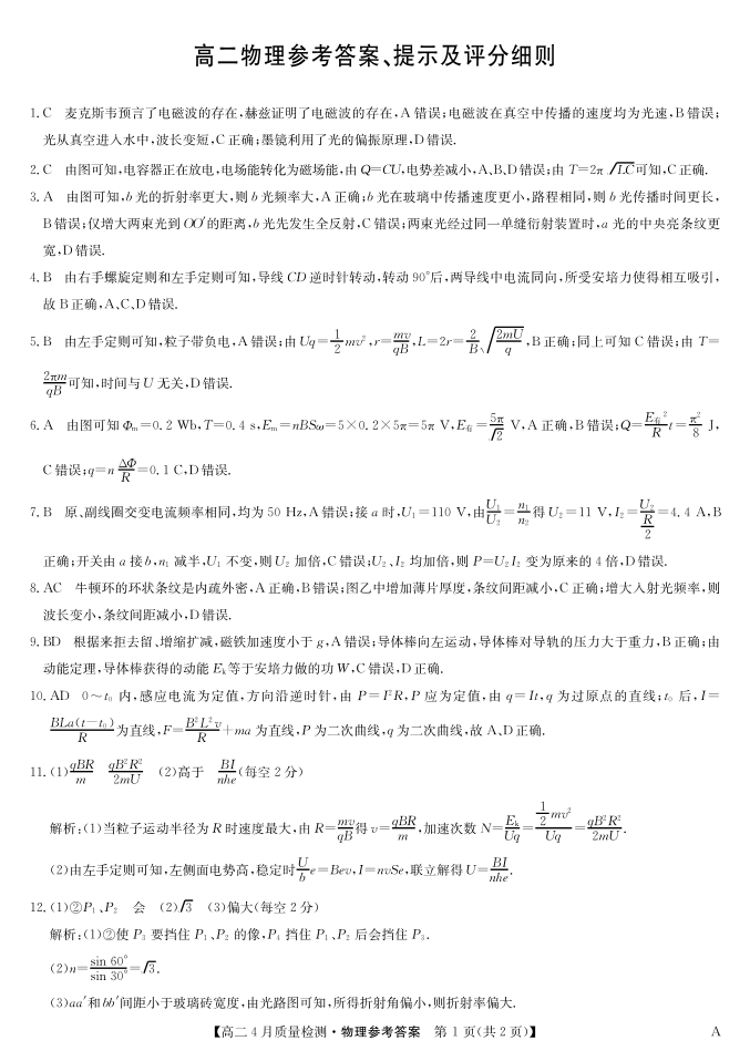 物理答案-高二4月质量检测 (A)三个版本通用.pdf