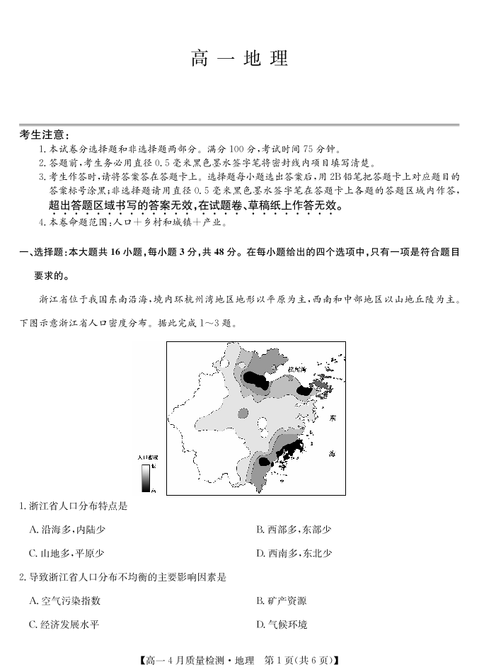 地理试卷-高一4月质量检测(四个版本通用).pdf