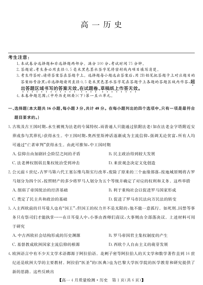 历史试卷-高一4月质量检测.pdf